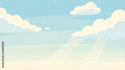 Fototapeta premium Soft Cartoon Sky Background with Fluffy Clouds and Sun Rays