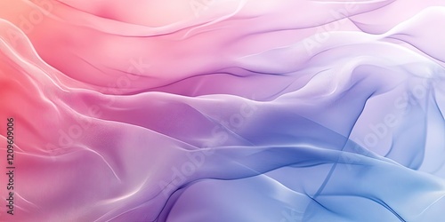 Fototapeta premium Soft chiffon texture background featuring flowing layers in gradient shades of pink and blue with smooth, ethereal curves creating depth and tranquility.