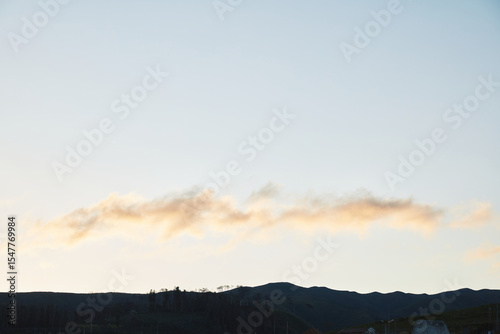 Fototapeta premium Soft cloud formation over dark hills at dawn or dusk, capturing the serene...