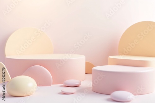 Fototapeta premium Soft Color Geometric Shapes on Minimalist Background for Design Use
