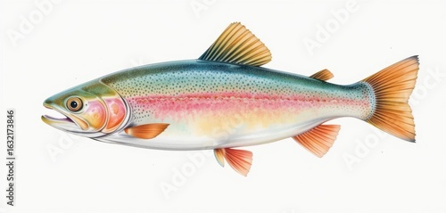 Fototapeta premium Soft Colors, Delicate Brushstrokes, Isolated Trout for Creative Projects,...