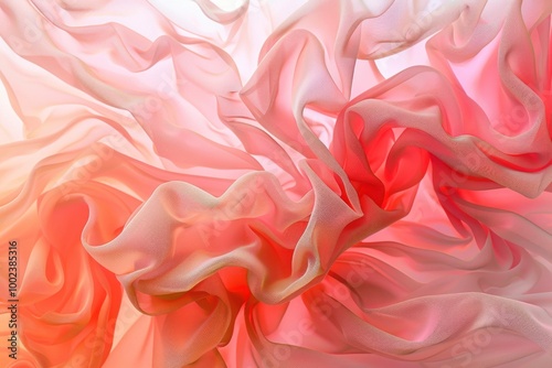 © kavinda, Obraz premium Soft Coral and Cream Fluid Waves in a Gentle Abstract Pastel Flow Design