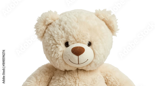 © mian, Obraz premium Soft cream colored teddy bear with brown nose and black eyes smiling on white background