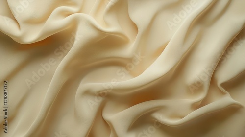 Fototapeta premium Soft cream fabric drapes gently, showcasing luxurious texture and fluid movement under soft lighting in a close-up view
