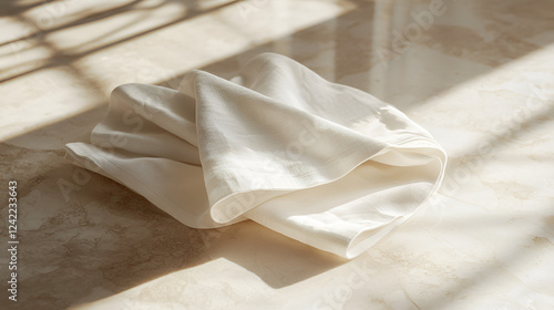Obraz premium Soft, creamy fabric draped elegantly on a light-colored surface, bathed in sunlight.