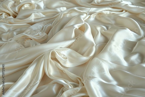 © AI Farm, Obraz premium Soft creamy silk sheets gently folded
