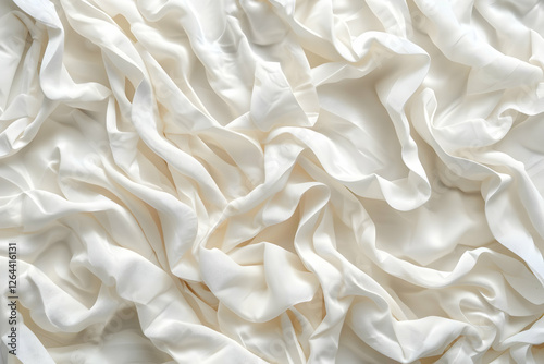 Obraz premium Soft, crumpled white fabric with gentle folds, creating an elegant texture for backgrounds or draping