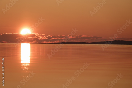 © Luidmila Spot, Fototapeta premium Soft dawn over the sea surface before the sun appears over the horizon on the White sea