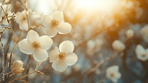 © Photo, Fototapeta premium Soft Floral Pattern with Large White Space for Text