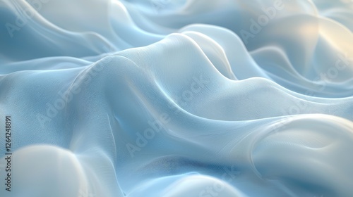 Fototapeta premium Soft, flowing blue fabric waves creating a serene atmosphere with gentle light reflections