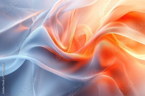 © YouraPechkin, Obraz premium Soft flowing fabric blending warm orange hues with cool blue tones in artistic display
