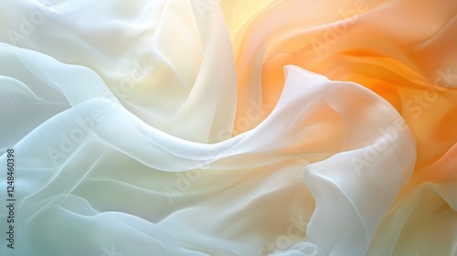 Obraz premium Soft, flowing fabric draped elegantly, blending colors of orange and white,...
