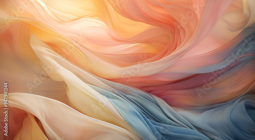 Obraz premium Soft flowing fabric in pastel colors creates a gentle, serene backdrop in an...