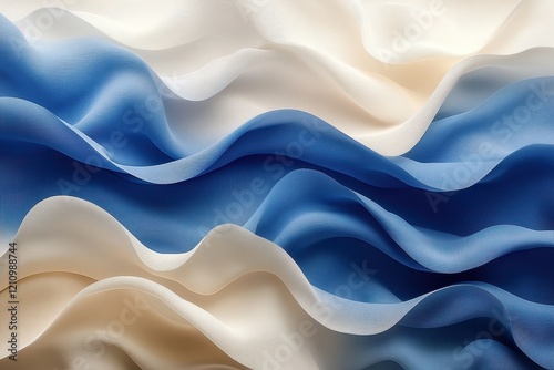 © darion, Fototapeta premium Soft, flowing fabric in shades of blue and cream, creating a wave-like texture.