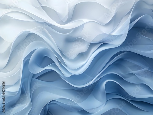 Fototapeta premium Soft, flowing fabric waves in shades of blue and white create a serene and...