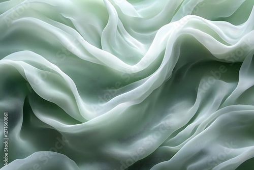 Obraz premium Soft, flowing green silk fabric draped elegantly, creating a serene and...