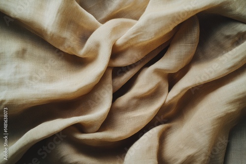 © Abuabdurrahman, Fototapeta premium Soft, flowing light beige fabric draped in folds