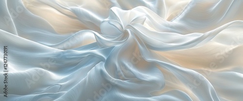 © budiyono, Obraz premium Soft, flowing light blue silk fabric with elegant, swirling folds and subtle highlights.