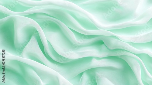 © tve-proneuro, Obraz premium Soft, flowing mint green fabric drapes elegantly across a surface, creating a serene and calming aesthetic perfect for various design projects or backgrounds