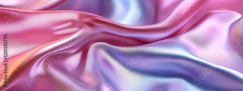 © Suesong, Obraz premium Soft Flowing Silk Fabric in Gradient Shades of Pink and Purple Light Reflection Texture
