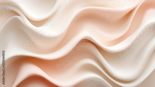 © Tackey, Fototapeta premium Soft Flowing Waves of Elegant Cream and Peach Fabric Textures in Abstract Design for Modern Backgrounds