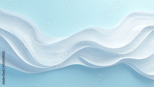 © Turbo, Fototapeta premium Soft, flowing white fabric or cream waves on a pale blue background; smooth, elegant curves suggest lightness and purity