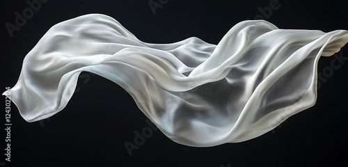 © Bashi Ai, Fototapeta premium Soft, flowing white silk fabric gracefully suspended in the air, set against a Black background.