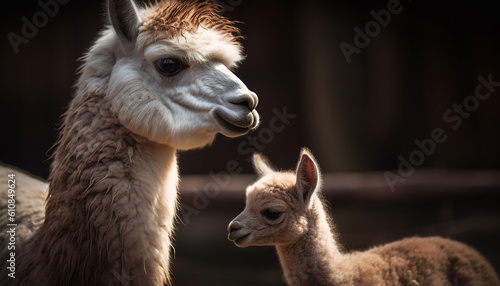 Obraz premium Soft, fluffy alpaca smiles for the camera generated by AI