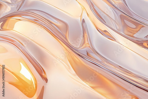 Obraz premium Soft Fluid Abstract Waves in Peach and Gold Tones – Minimalist and Elegant Backgrounds for Calming and Modern Design Concepts