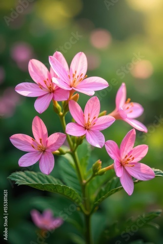 © photohappy, Fototapeta premium Soft focus delicate pink flowers blooming in a lush garden, nature, pastel
