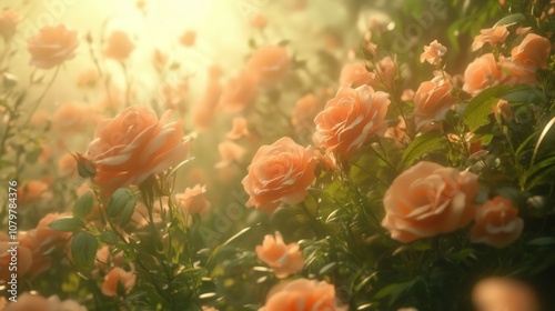 Obraz premium Soft focus image of blooming orange roses in a garden