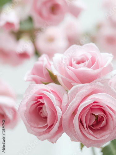 © dadtophoto, Fototapeta premium Soft-focus light pink roses, blurred pastel background, botany, pastel