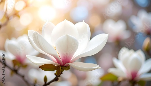 © Lepo, Fototapeta premium Soft-focus magnolia blossoms in spring sunshine