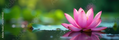 © box, Fototapeta premium Soft focus of a pink lotus flower on a pond surface, soft focus, landscape