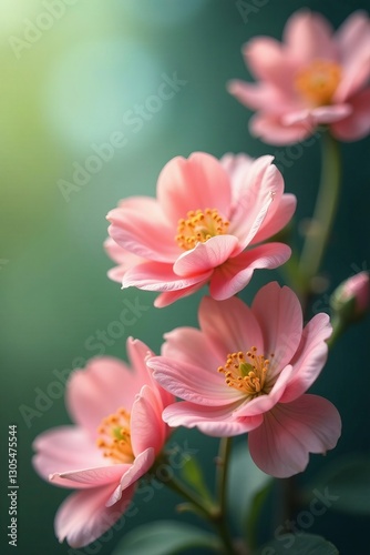 © Thiti, Obraz premium Soft focus on delicate fabric flowers in various shades, decor, close-up