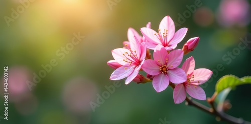 © Chalermrach, Fototapeta premium Soft focus on delicate pink flowers in bloom on plant stem, gardening, macro