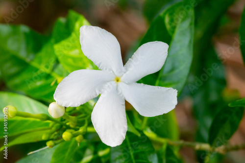 © Mitsuru Kumazawa, Fototapeta premium Soft focus on green leaves in the background, close up of jasmine flowers