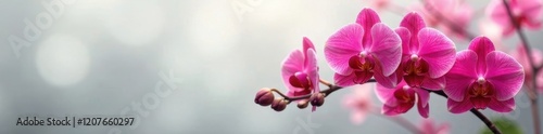 Fototapeta premium Soft focus on red orchids amidst the subtle texture of a light grey veil,...