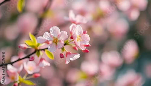 © Poom, Obraz premium Soft-focus pastel spring blossoms, blurred background, bokeh light effects, macro, vibrant