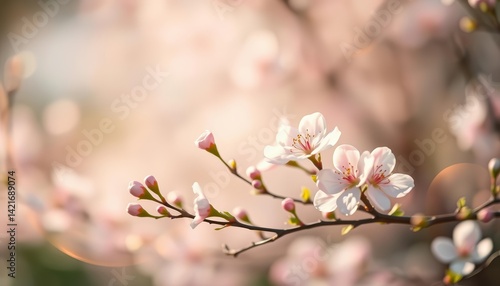 © DITSARAPHAN, Obraz premium Soft-focus pastel swirls, blossoming buds, and gentle light create an ethereal springtime scene, springtime, artistic