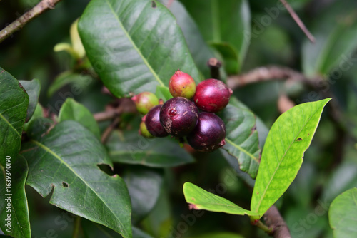 Fototapeta premium Soft focus view of a fruit growing on a ripe fruit bunch of a jungle geranium plant
