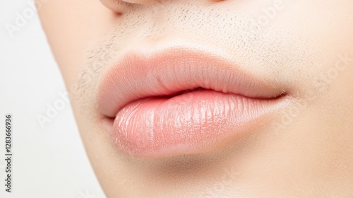 Fototapeta premium Soft, full lips subtly parted, showcasing potential results of cosmetology or lip augmentation procedures, highlight natural beauty and enhancement possibilities