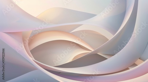 Naklejka premium Soft Geometry, Gentle, curving lines and rounded shapes set against a muted color background, creating a serene and elegant abstract digital artwork