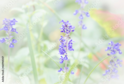 Fototapeta premium Soft Glow and Muted Effect on Garden of Salvia Flowers