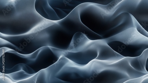 © Loopik, Obraz premium Soft Glowing Blue and Black Waves with Subtle Highlights