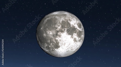 Fototapeta premium Soft Glowing Full White Moon in a Deep Blue Night