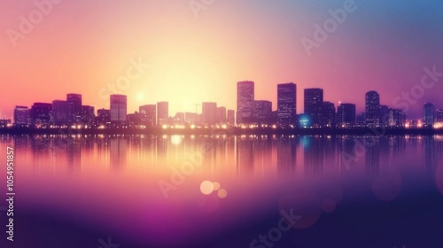© Fauzerene, Naklejka premium Soft Glowing Nightscape with Gradient Tones Over City
