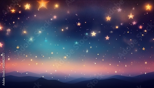 Fototapeta premium Soft gradient midnight sky with tiny twinkling stars scattered across the...