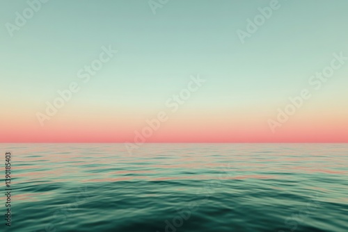© Nikolai, Obraz premium Soft gradient sky meets tranquil ocean waves, creating serene at