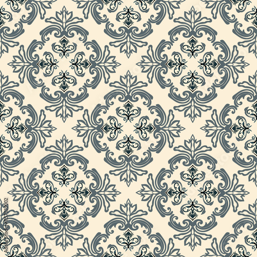 © Siriyaporn Chong, Fototapeta premium Soft green and cream classic Victorian traditional seamless damask pattern, vector illustration pattern, ethnic pattern, design for wallpaper, fabric, and backdrop.